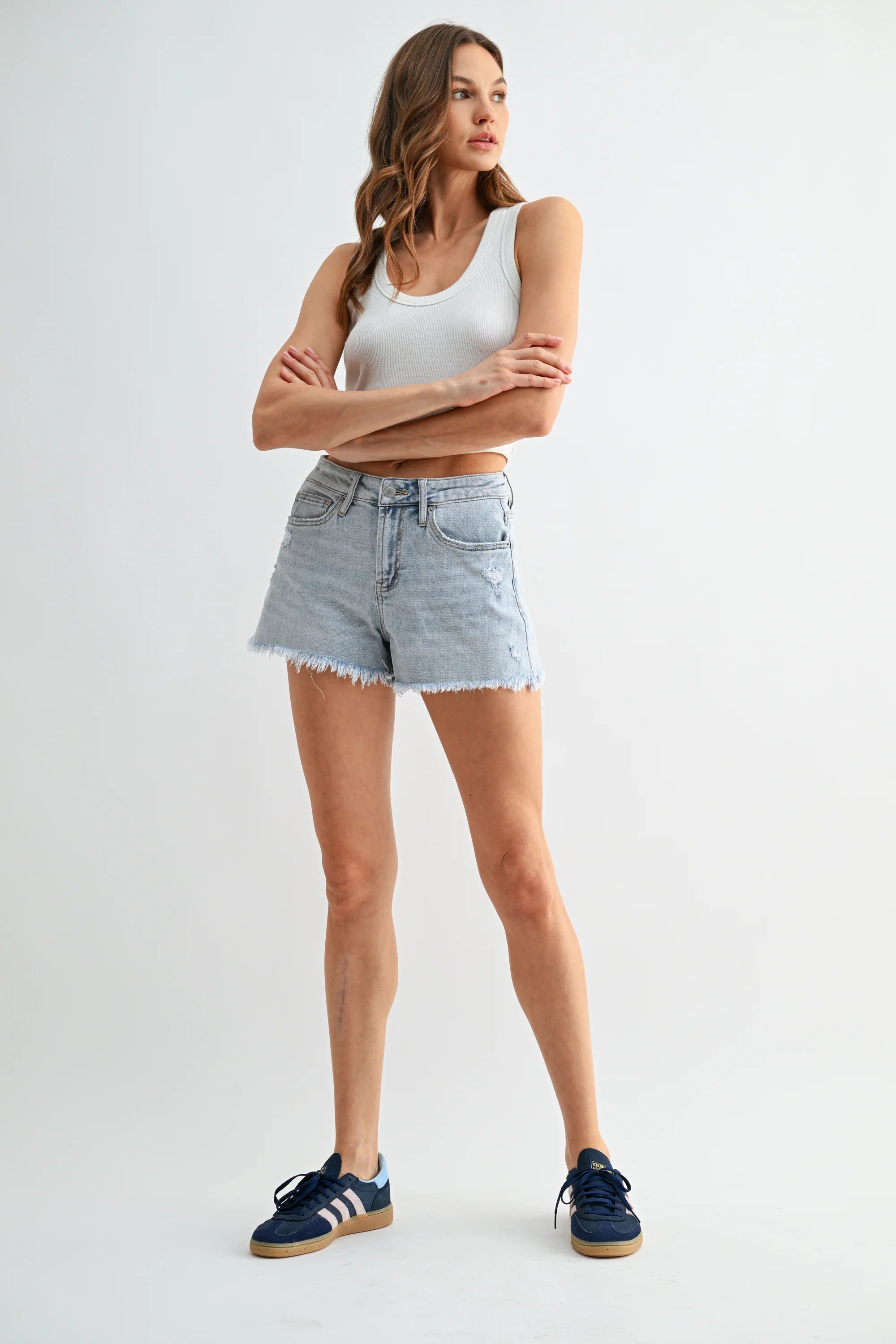 MICA SUPER HIGH RAW HEM MID LENGTH SHORTS
