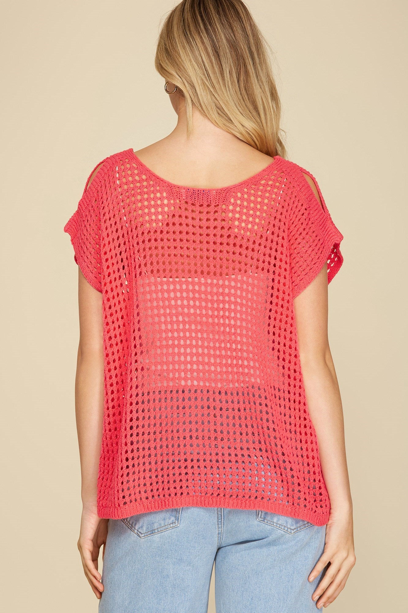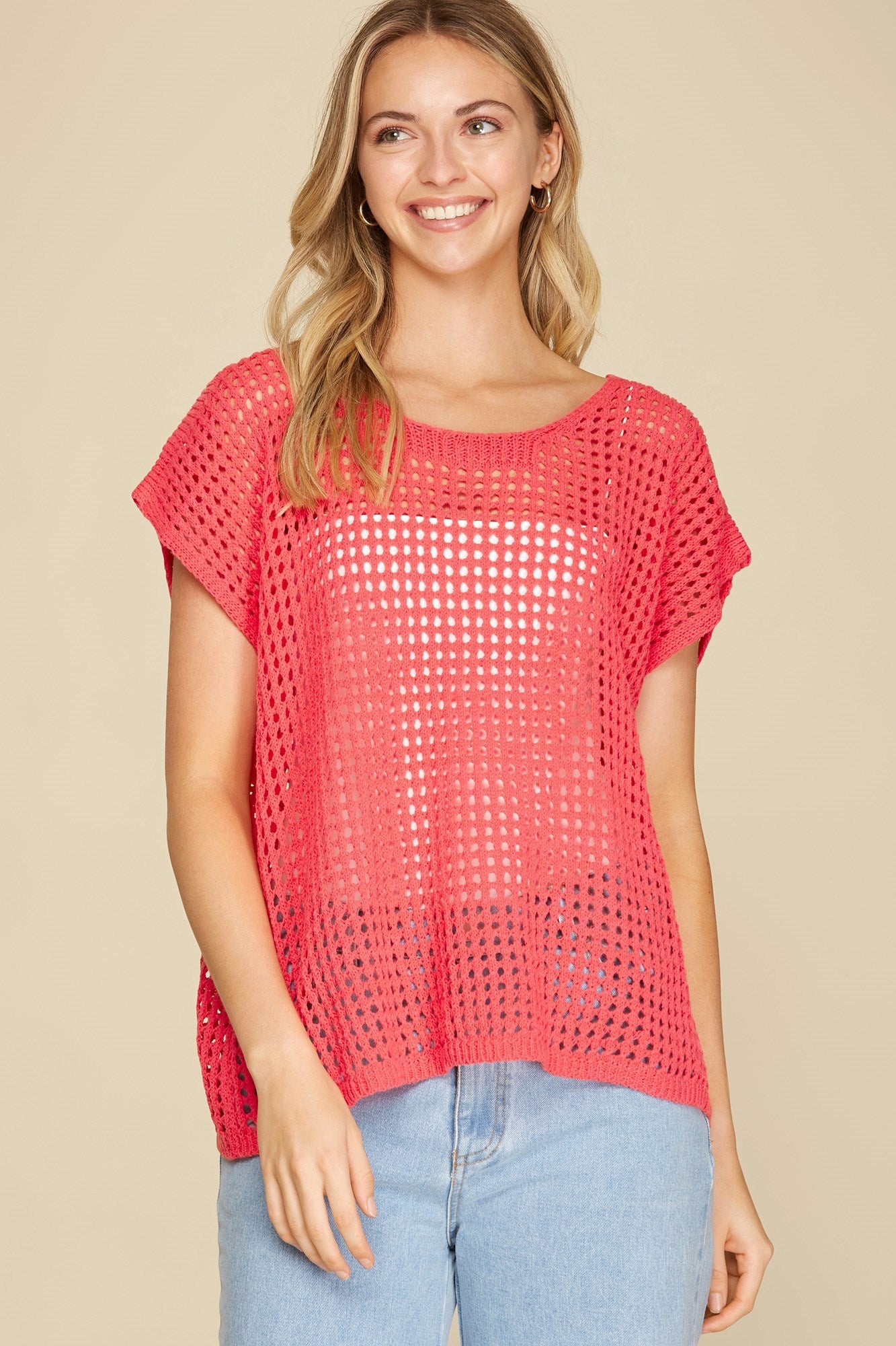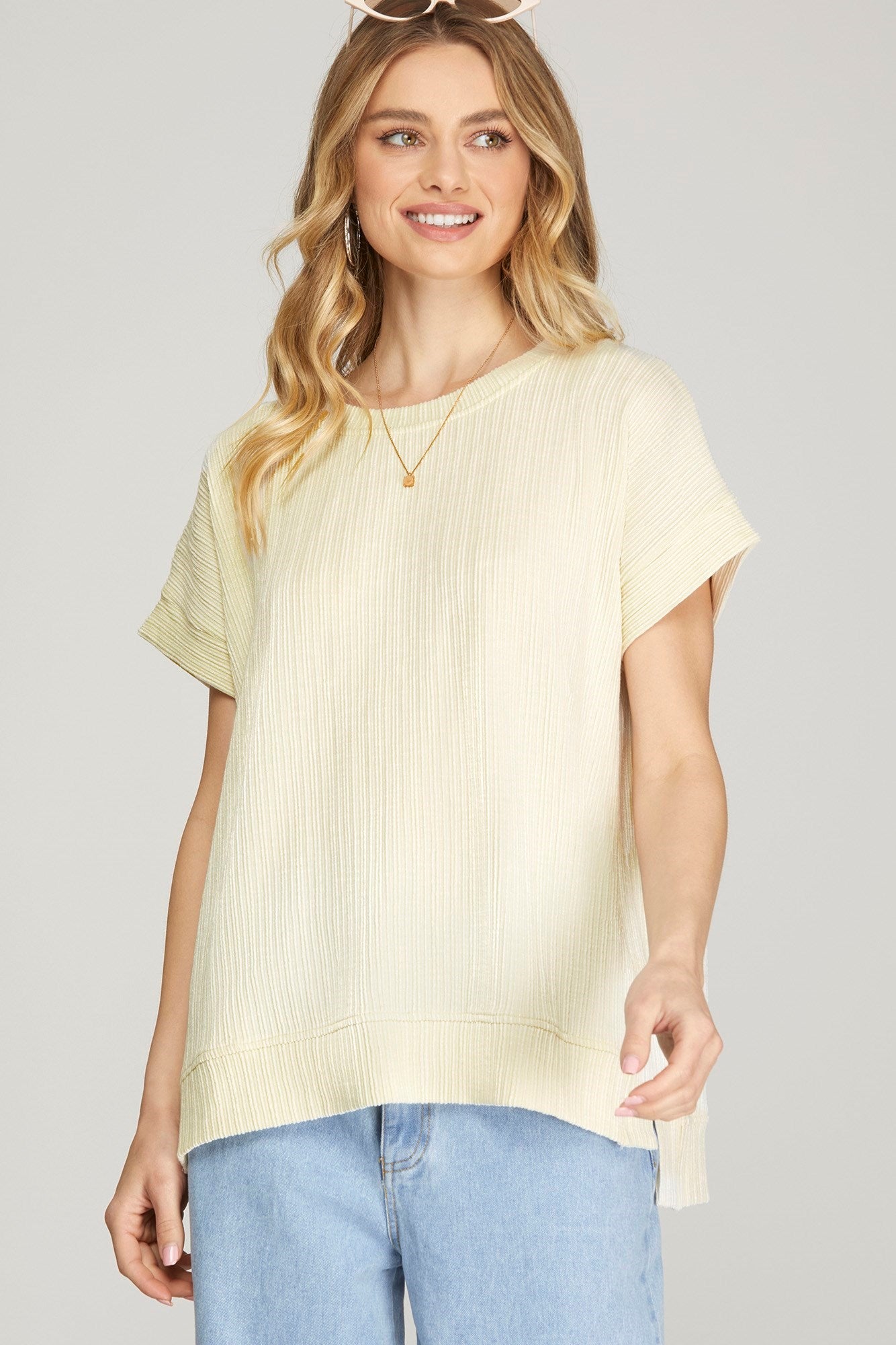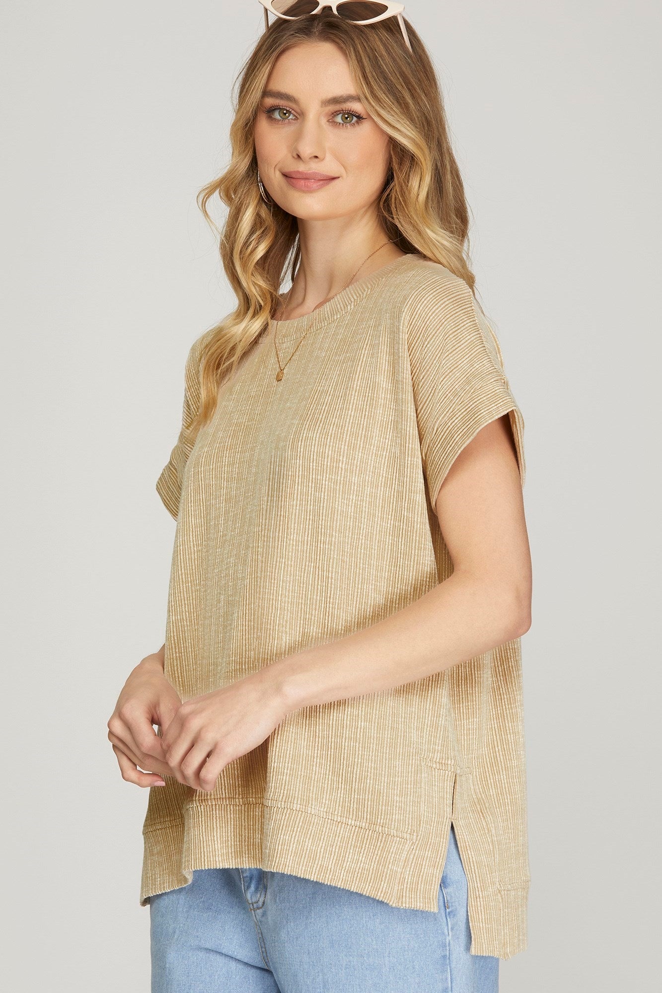 Drop Shoulder Short Sleeve Ribbed Knit Top