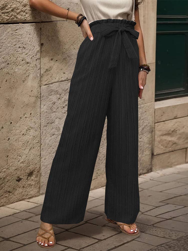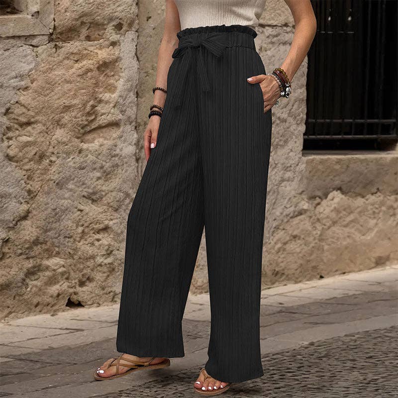 Lace-up Ruffle-trimmed Elastic Trouser Pants