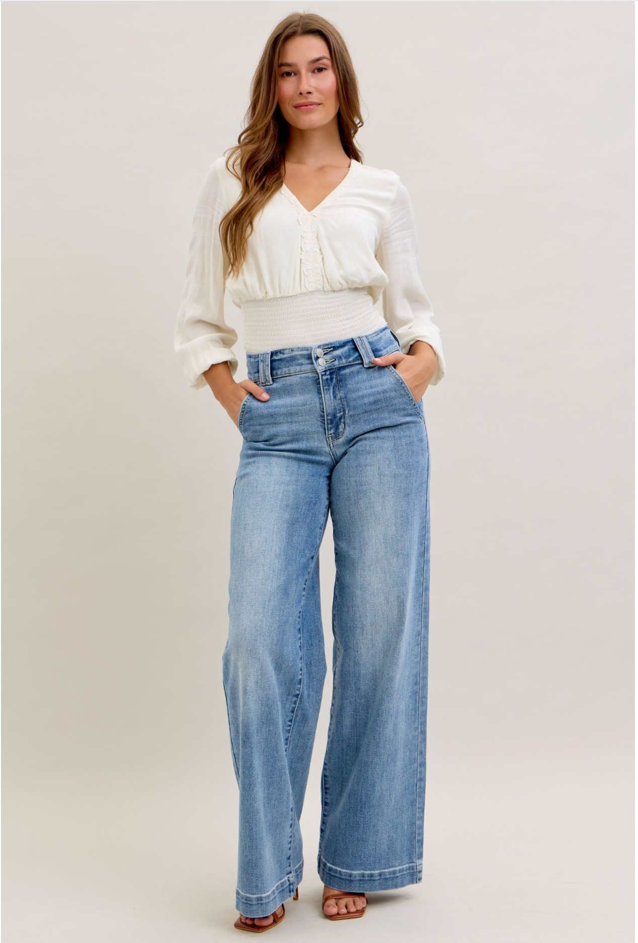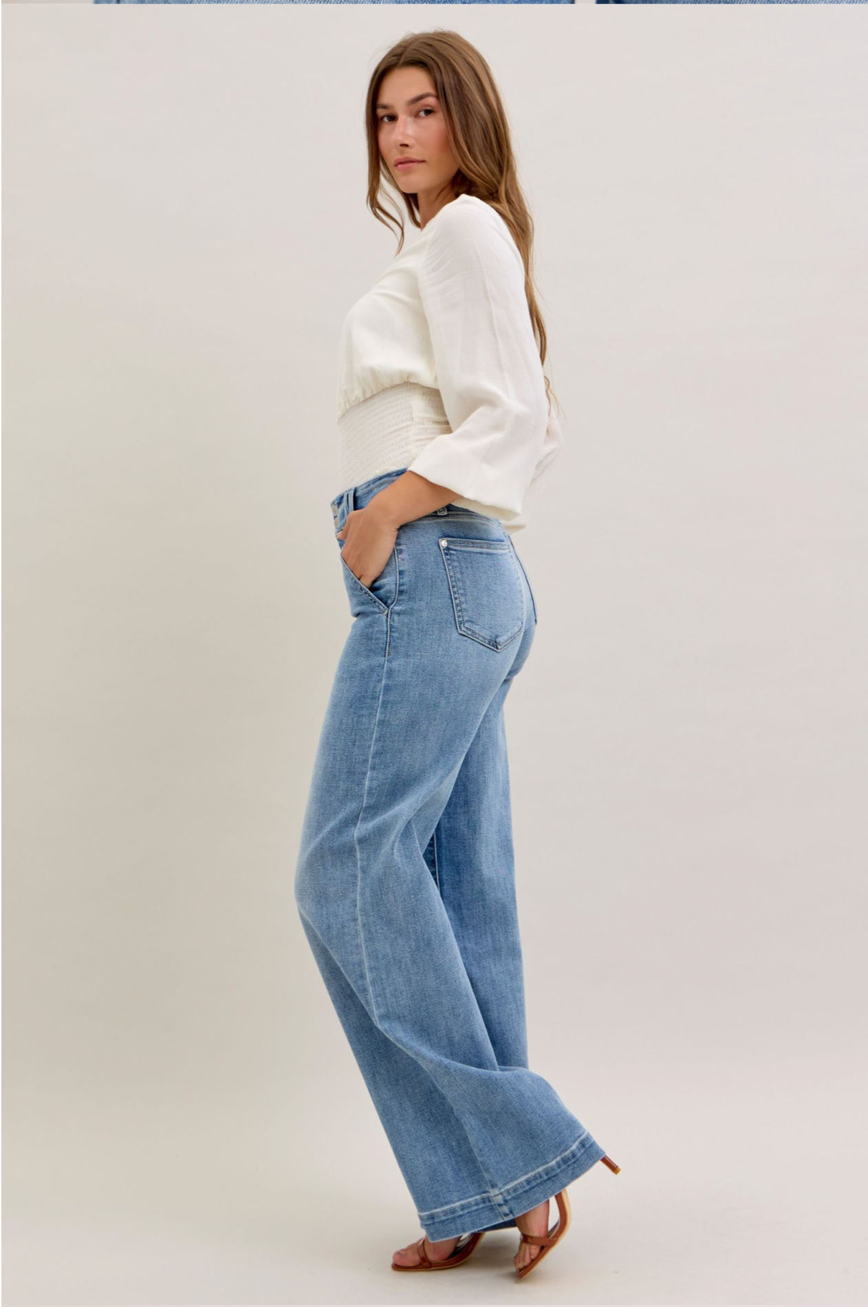 Judy Blue High Waisted Trouser Wide Leg Jeans