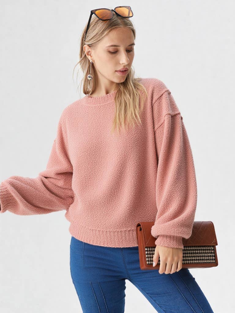 Crew Neck Long Balloon Sleeve Knitted Sweater