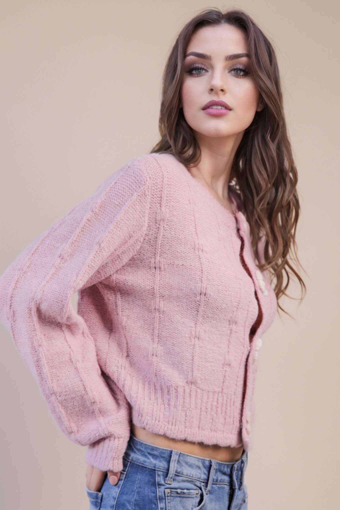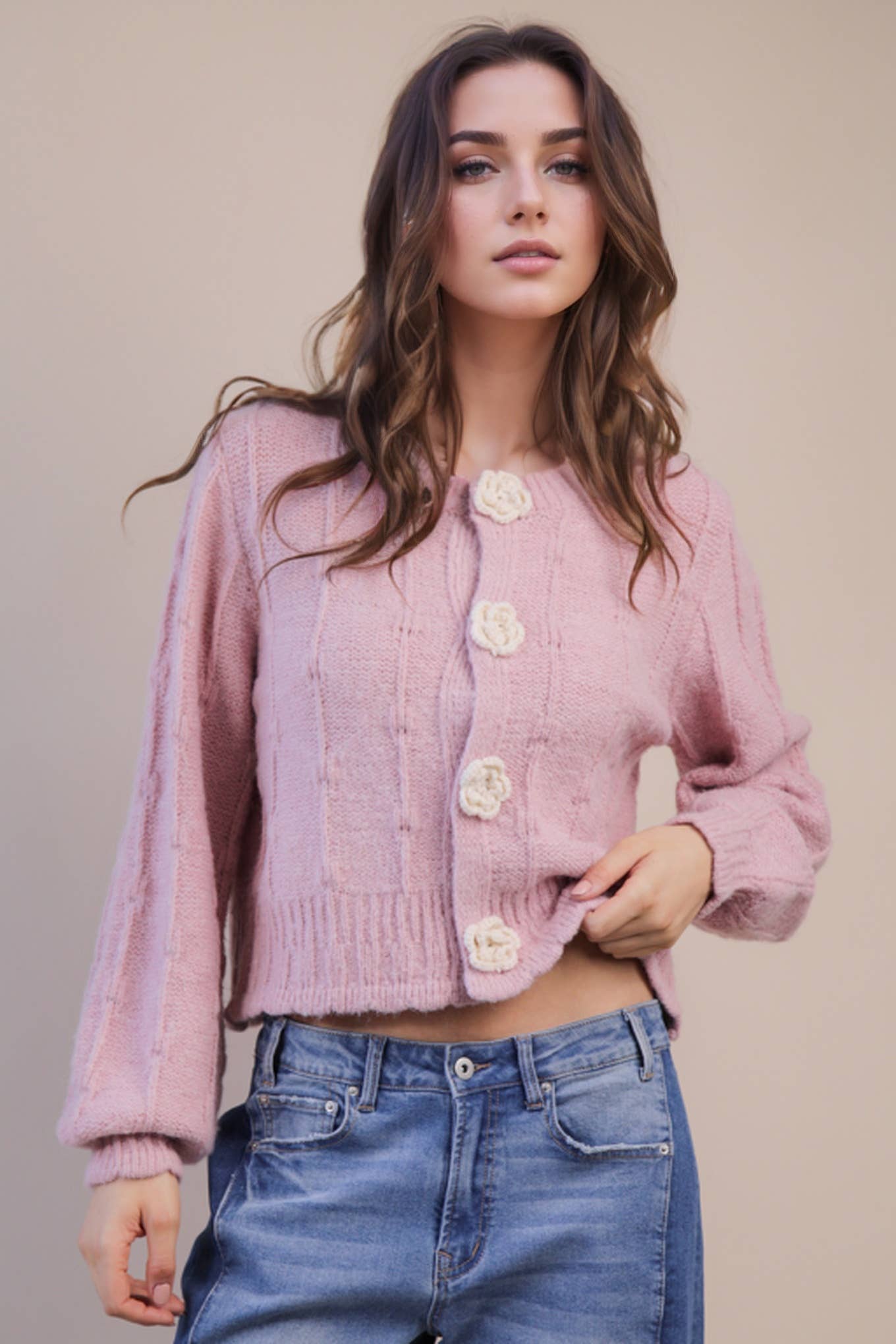 Floral Button Crop Sweater Cardigan